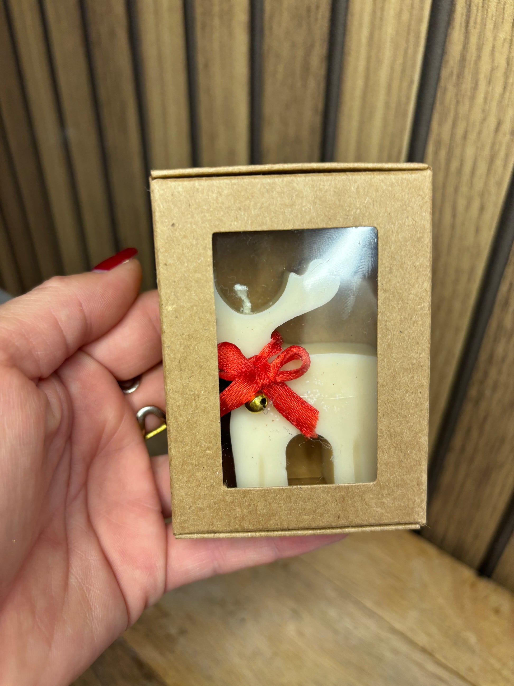 Cette élégante bougie en forme de Renne du Père Noël fabriquée à la main ajoutera une touche moderne et parfumée à votre intérieur et à vos décorations de Noël.