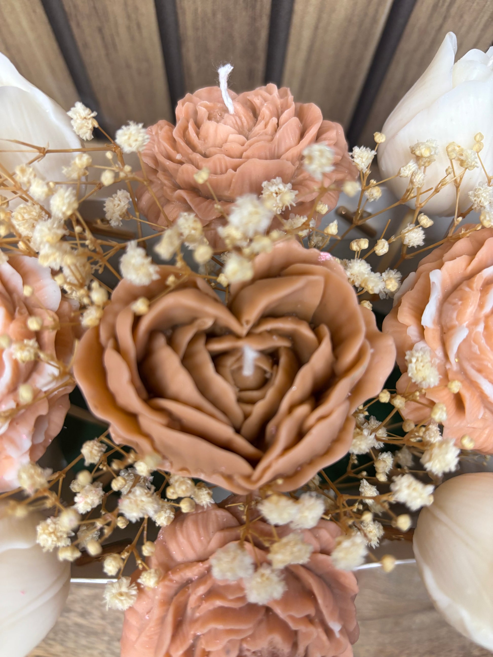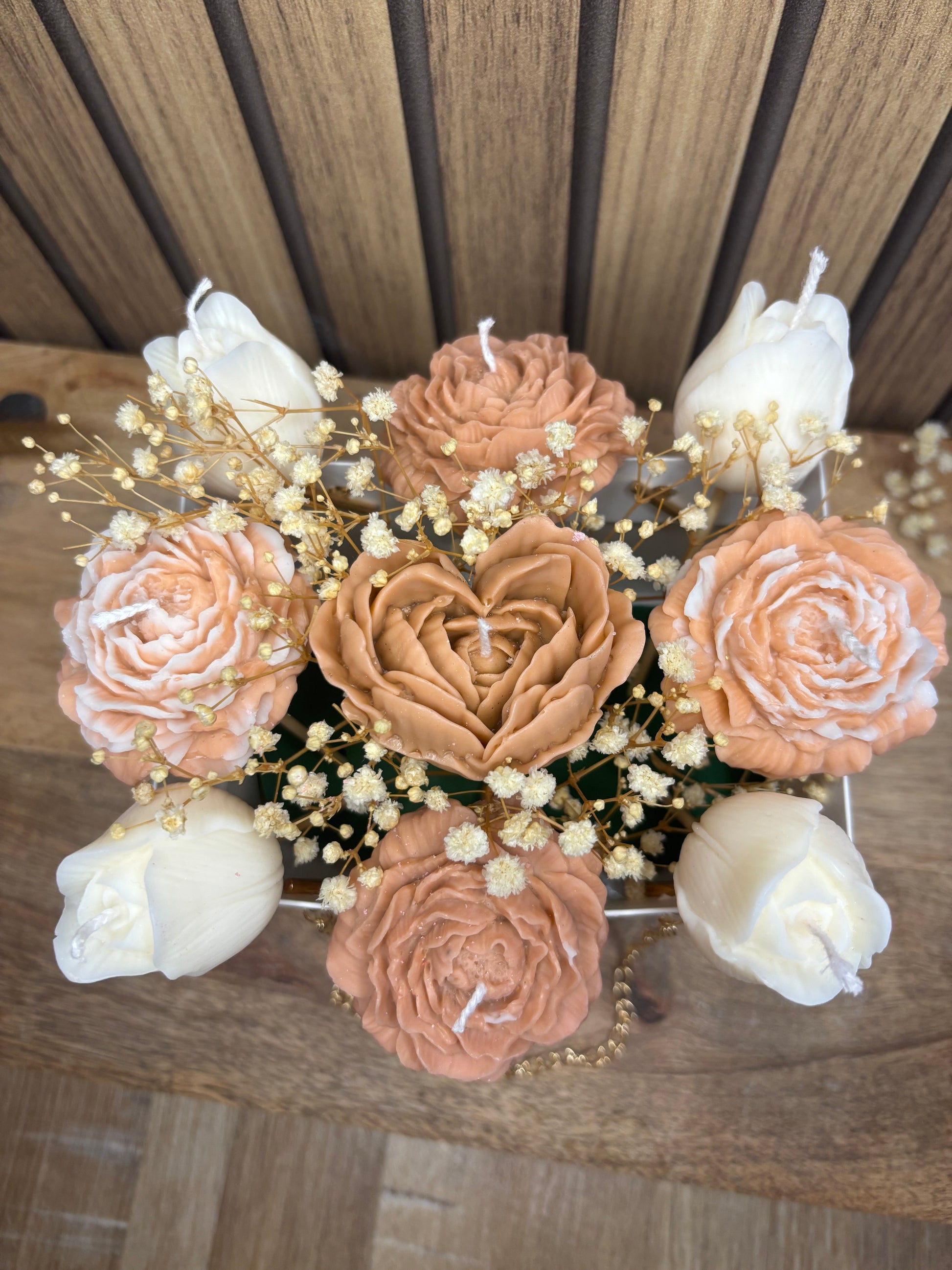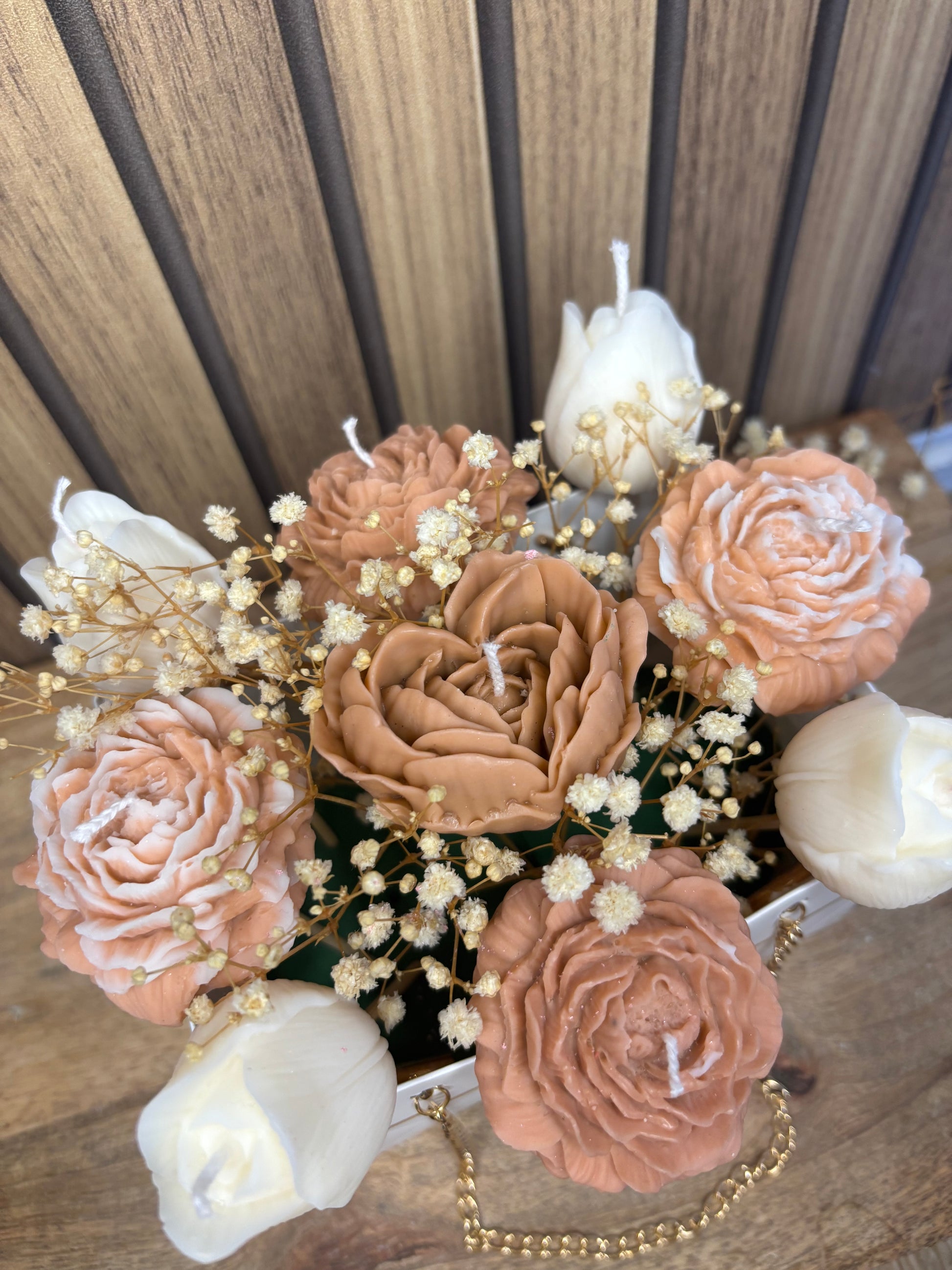 Cet élégant bouquet de bougies parfumées fabriqué à la main ajoutera une touche élégante et parfumée à votre intérieur.